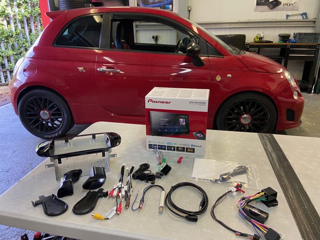 Fiat 500 Abarth 2012 model upgraded with Pioneer SPH-DA160DAB stereo using the Connects2 CTKFT02 fitting kit.
