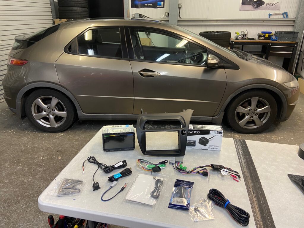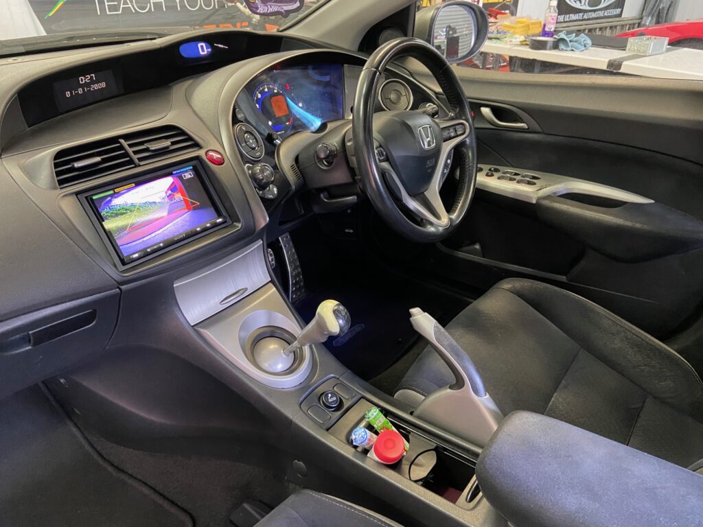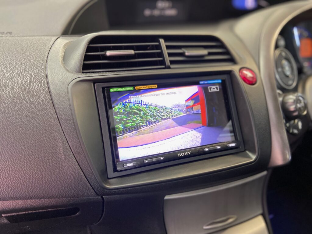 Honda Civic FN2 2005 model Upgraded with Sony XAV-AX5650 and Kenwood CMOS-230 Reversing Camera. We used the Connects2 CTKHD01 Installation Kit which provides the correct fascia and the steering wheel adaptor which allows us to retain the volume controls on the steering wheel.