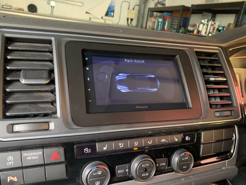 VW Caravelle 2019 model upgraded with Pioneer SPH-DA360DAB using our FKIT-VW-66. The kit retains the optical parking display, the USB socket and the original DAB aerial. We also used a camera retention lead to complete the install.