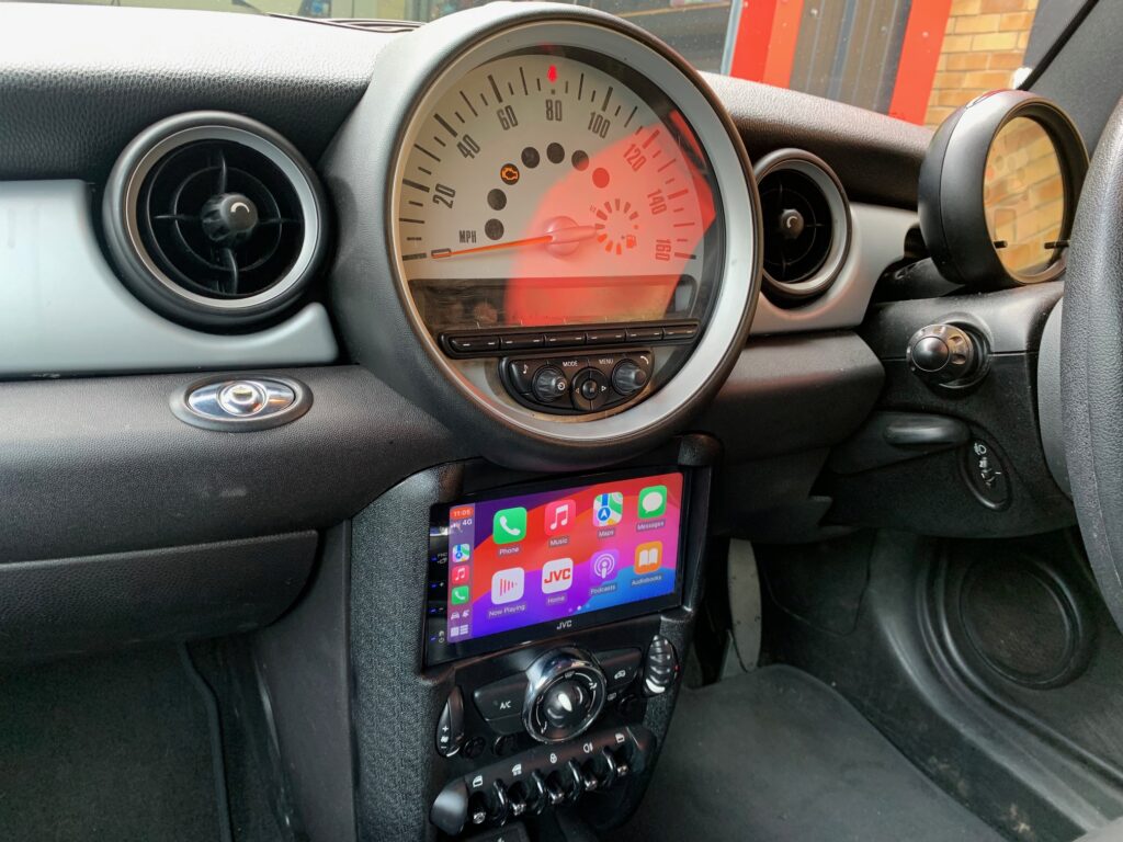 Mini One (R56) 2013 model upgraded with a JVC KW-M560BT CarPlay/Android Auto stereo using our FKIT-MINI-02 installation kit.