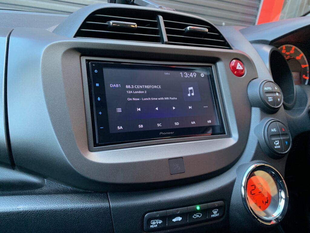 Honda Jazz 2011 model upgraded with a Pioneer SPH-DA360DAB CarPlay/Android Auto stereo.
