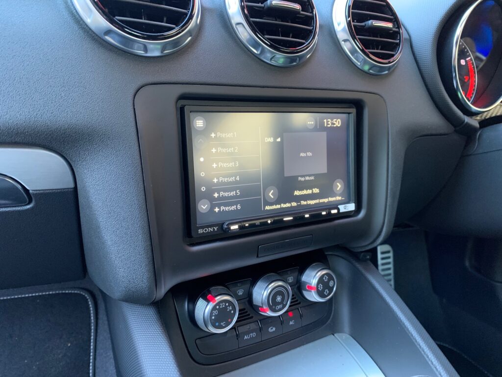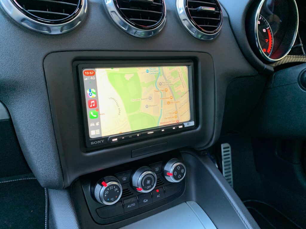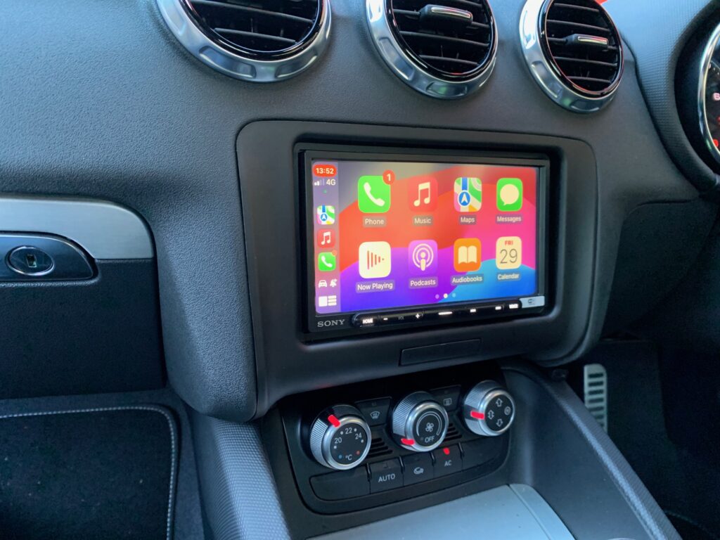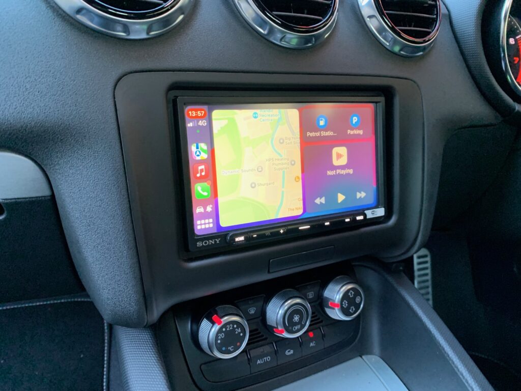 The Audi TT 2013 model has been upgraded with a Sony XAV-AX4050 Wireless CarPlay stereo, offering seamless integration with Apple devices for enhanced connectivity and entertainment on the road.
