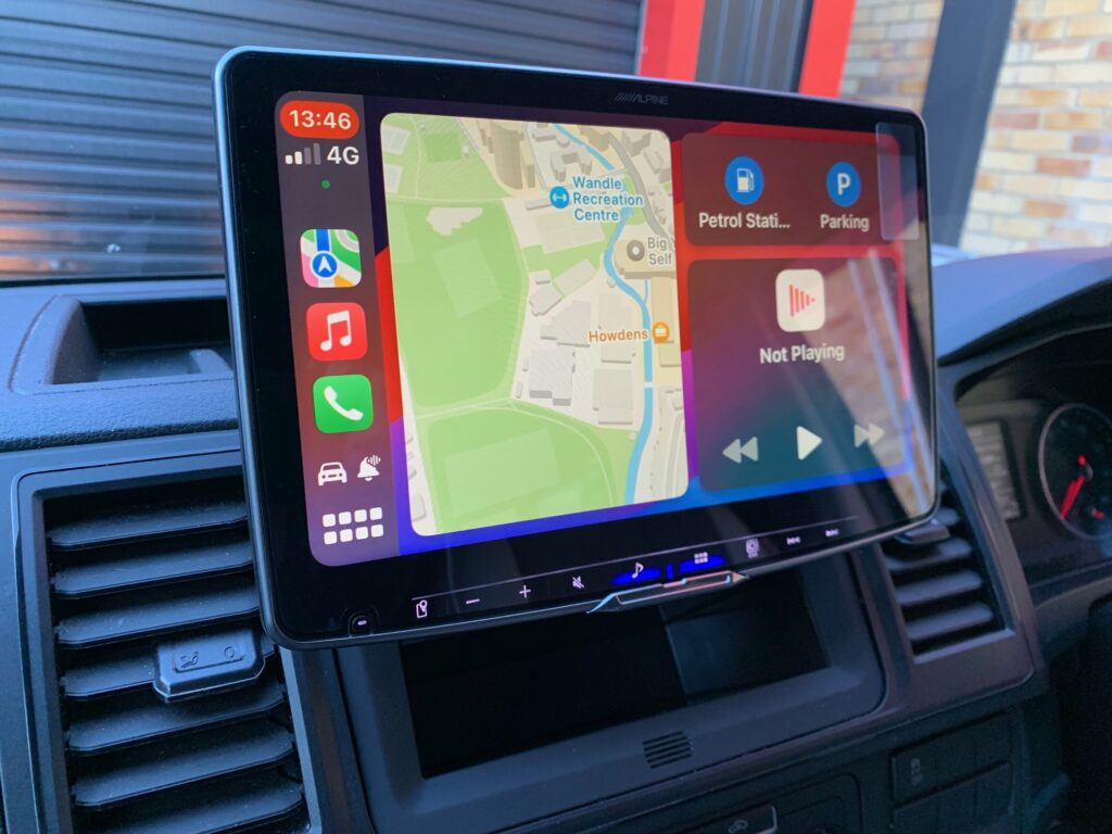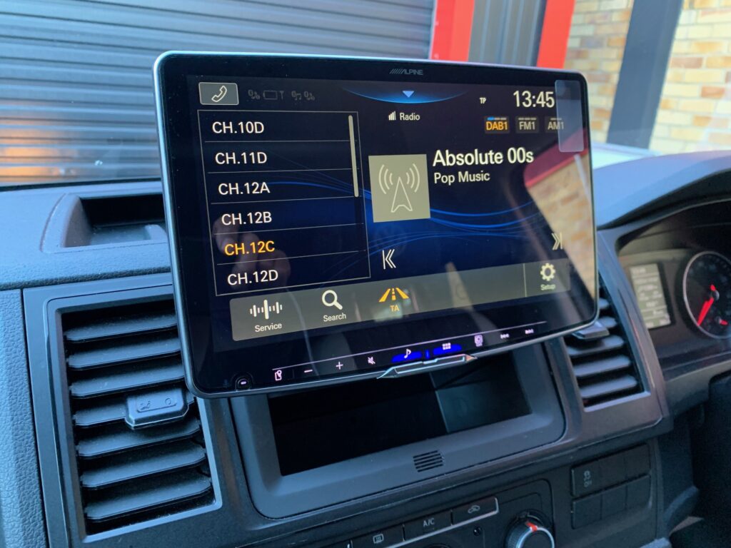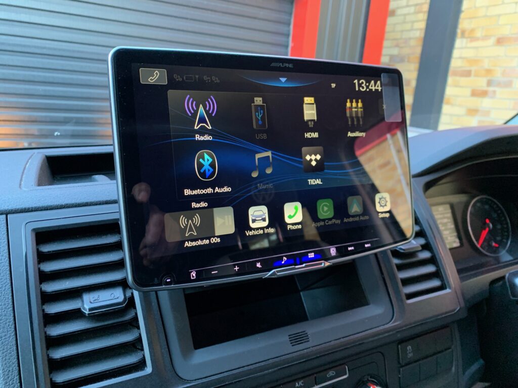 VW Transporter T6 2016 model Upgraded with Alpine ILX-F115D using KIT-HALO-VW303 Fitting Kit, CT27AA111 DAB retention lead and CTVWUSB.4 USB retention lead.