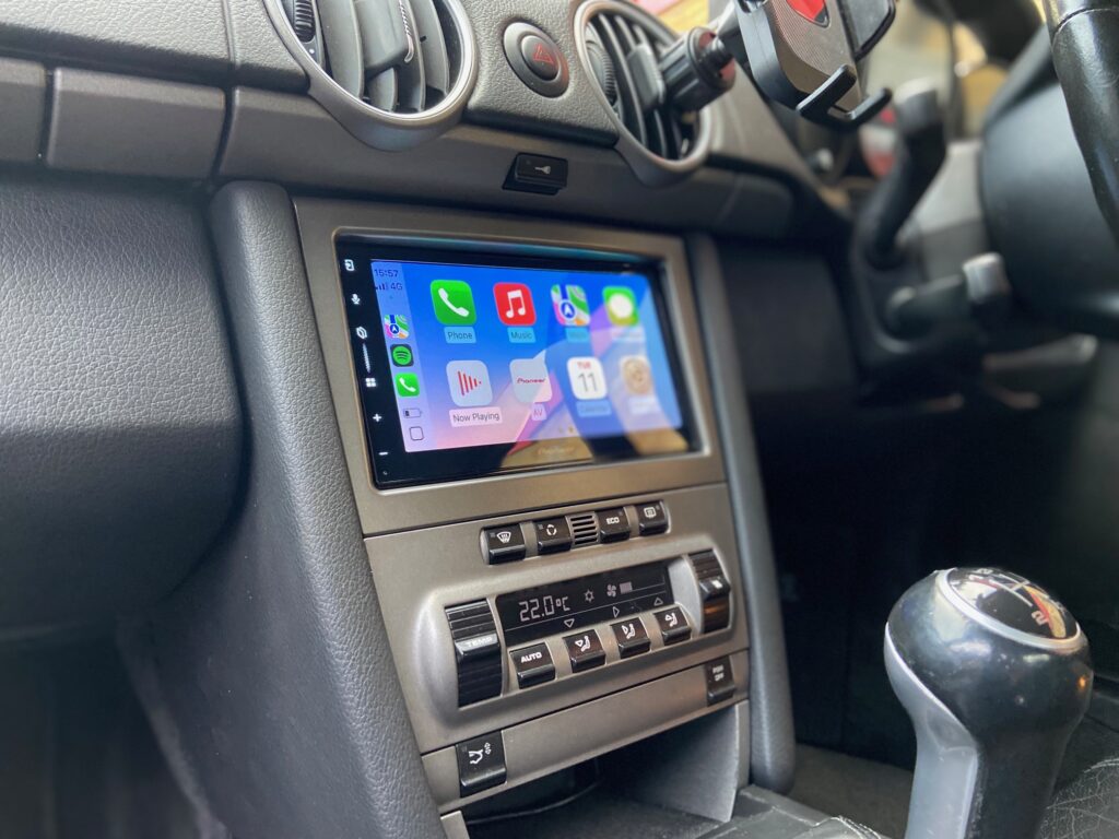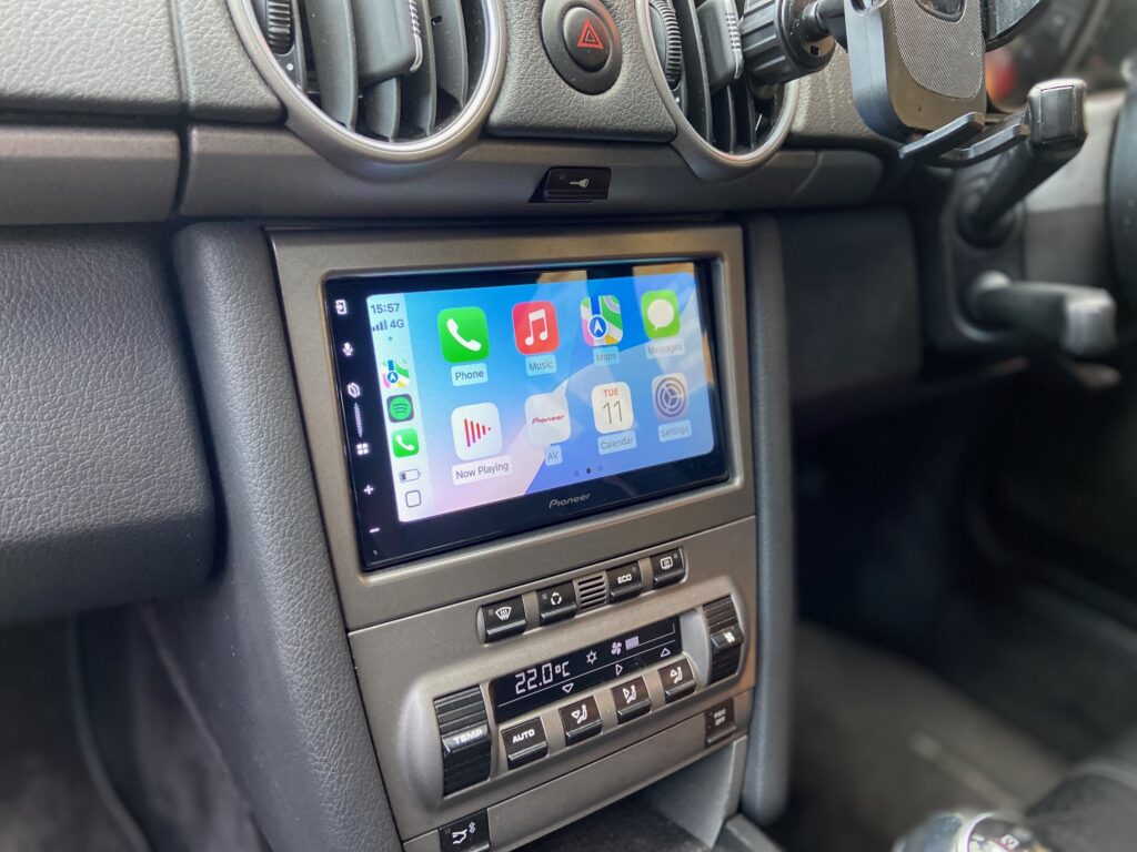Porsche Cayman 2007 model upgraded with Pioneer SPH-DA77DAB Wireless CarPlay Stereo.