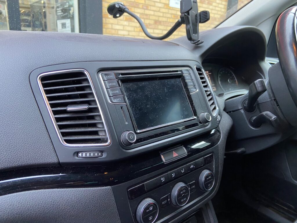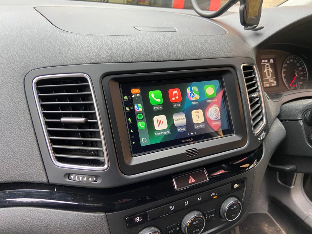 Seat Alhambra 2016 model here for an audio upgrade. We installed the Kenwood wireless CarPlay stereo model number DMX7722DABS using connects2 parts. Fascia was CT24VW12, Infodapter which retained the information of the vehicle and displayed it on the new stereo was part number CTUVW03 and the aerial adaptor was CT27AA76.