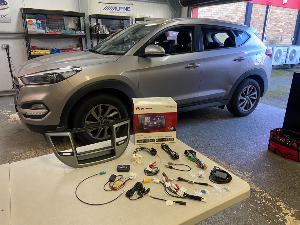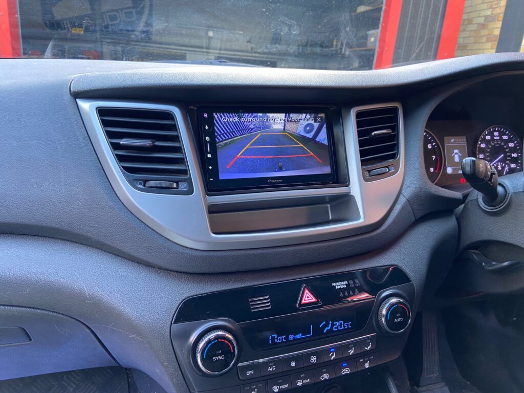 Hyundai Tucson 2017 model Upgraded with the Pioneer SPH-DA77DAB Wireless CarPlay stereo using Connects2 CTKHY23 fitting kit, the CAM-HY3-RT camera retention lead and for retaining DAB antenna 21-037.