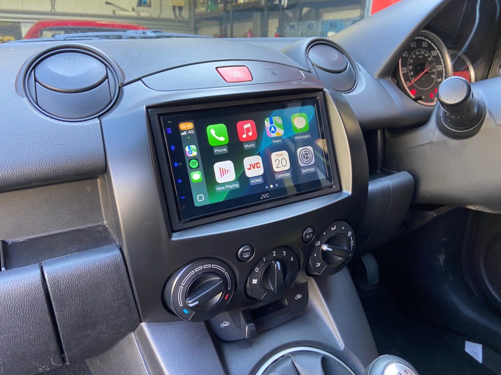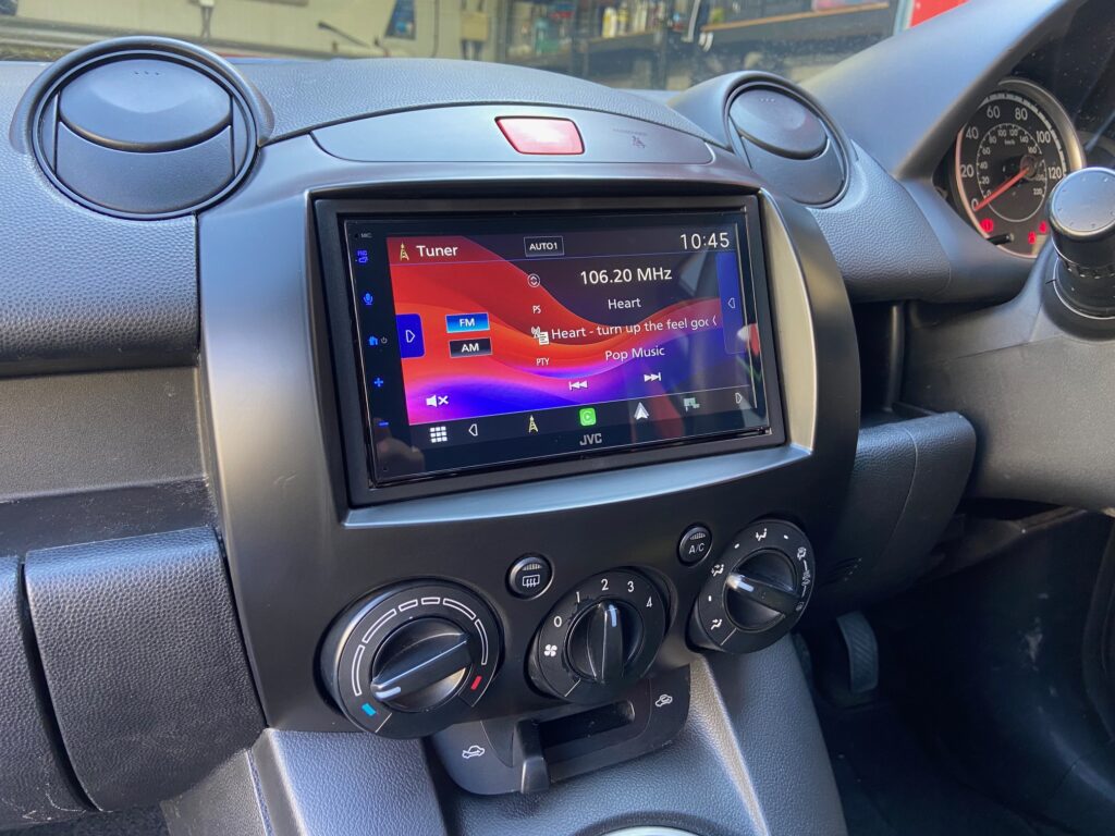 Mazda 2 2013 model Upgraded with a JVC KW-M593BT CarPlay stereo. We used Connects2 CTKMZ09 Fitting Kit to complete the installation.