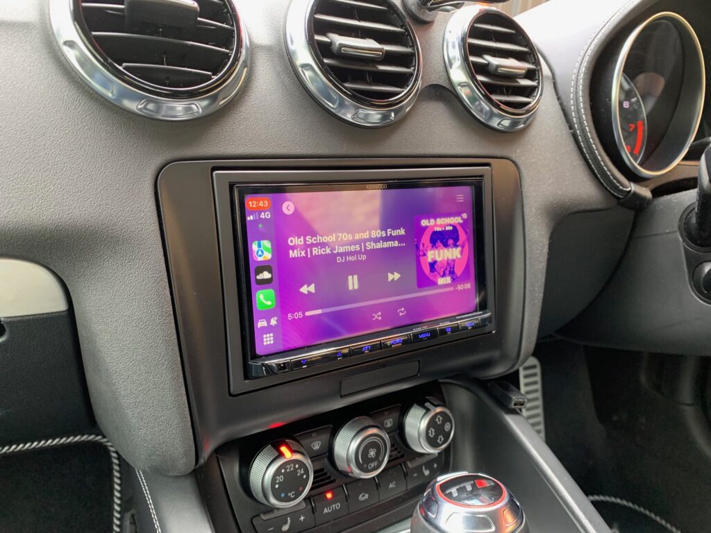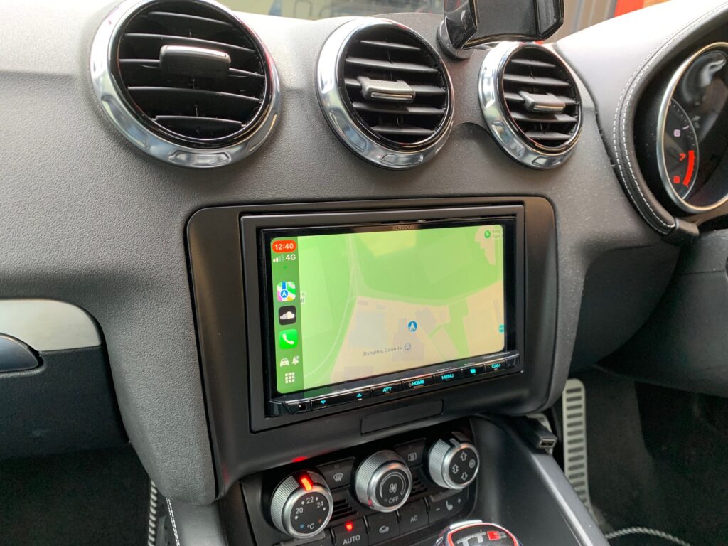 Audi TT 2012 model in for a car stereo upgrade. We opted for the Kenwood DMX8021DABS wireless CarPlay stereo.