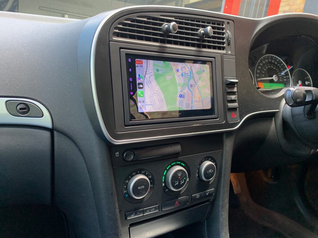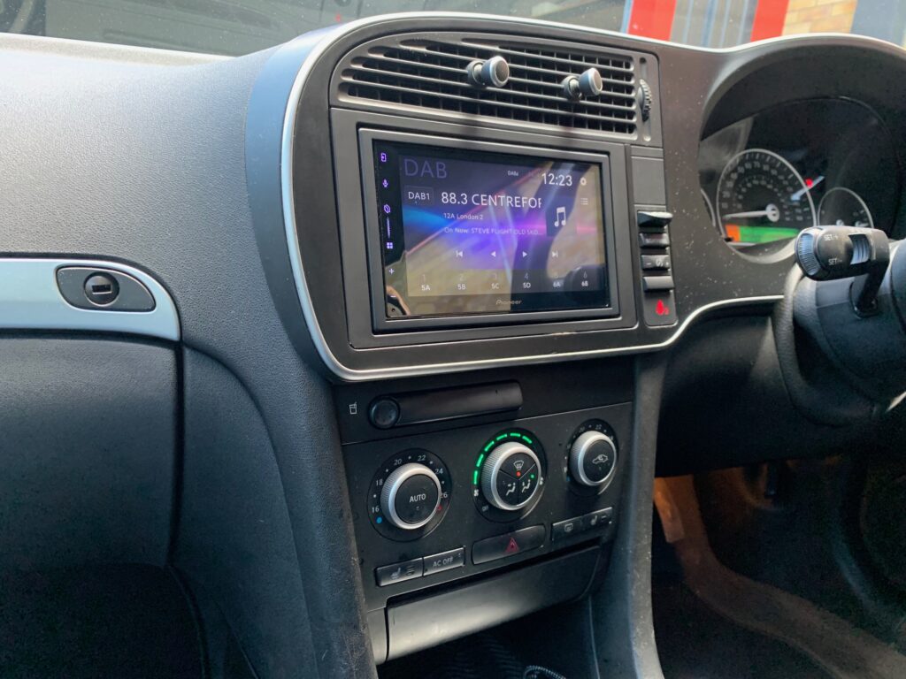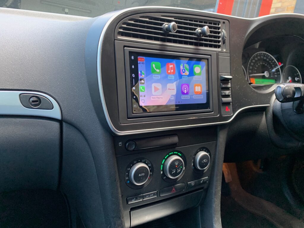 Saab 9-3 2010 model upgraded with the Pioneer SPH-DA77DAB wireless Car Play stereo