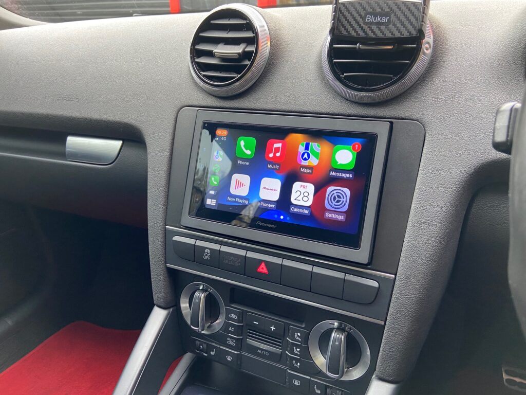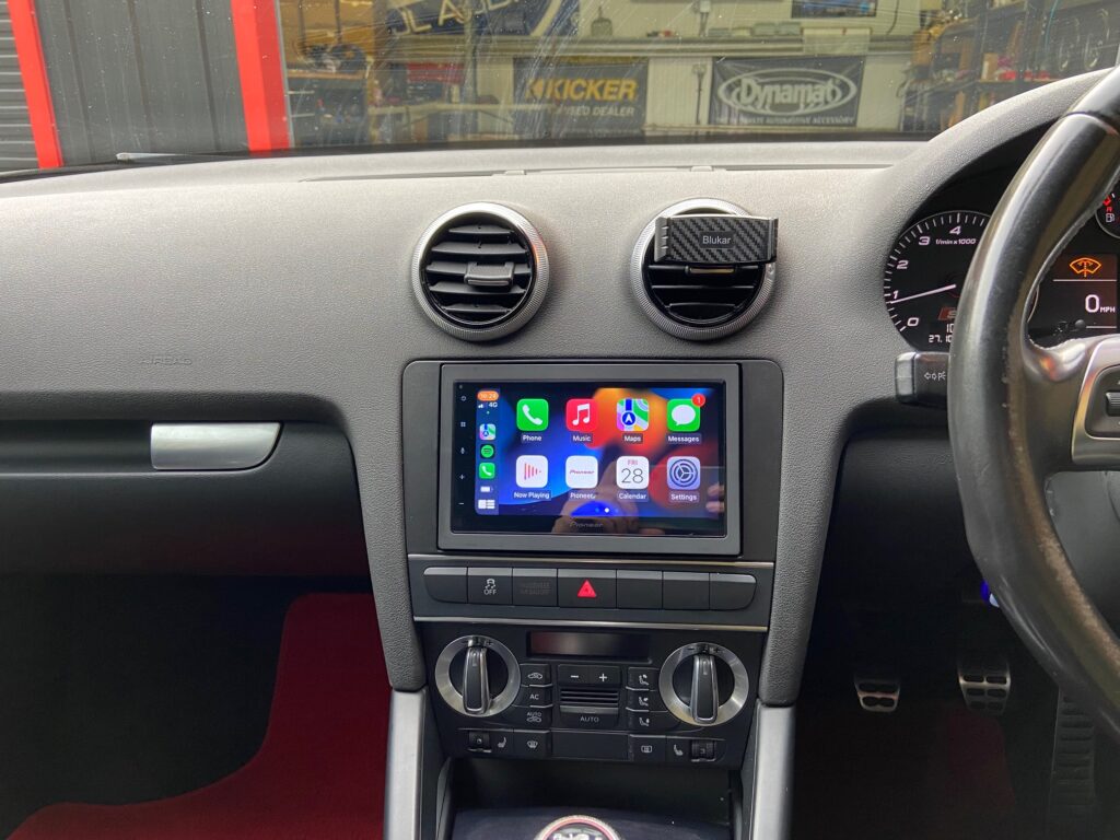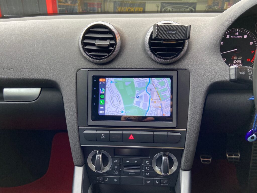 Audi S3 2009 model with Bose Upgraded with Pioneer SPH-DA360DAB CarPlay/Android Auto stereo. We used the Connects2 fitting kit which provides the fascia and the Bose amp retention lead combined steering wheel adaptor.
