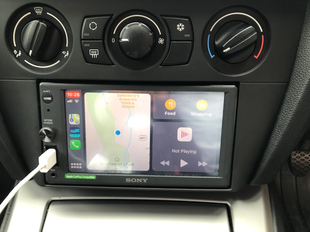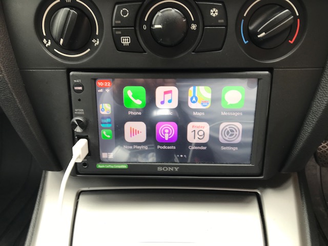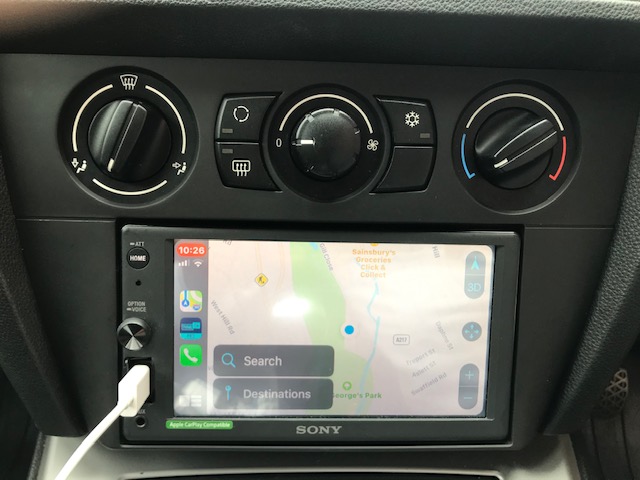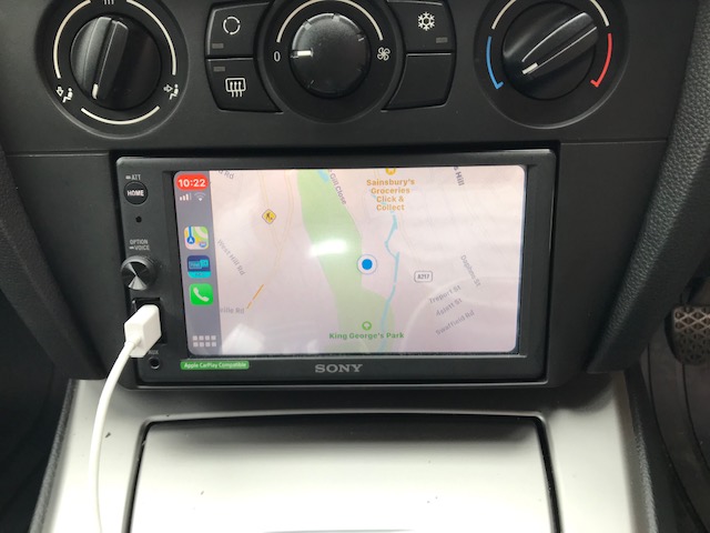 Here we have a BMW 3 Series for a CarPlay unit to be installed. We went with a Sony XAV-AX1000 and used the Connects2 fitting kit to allow us to install the double din unit and retain the steering controls and parking sensors on the vehicle.