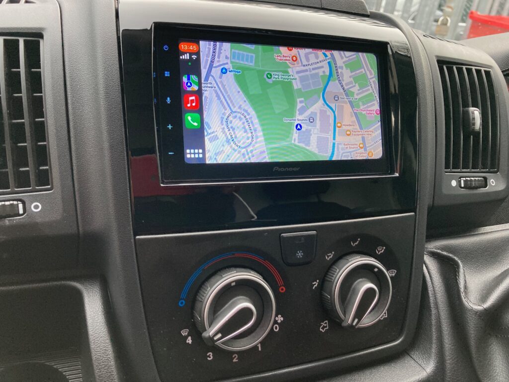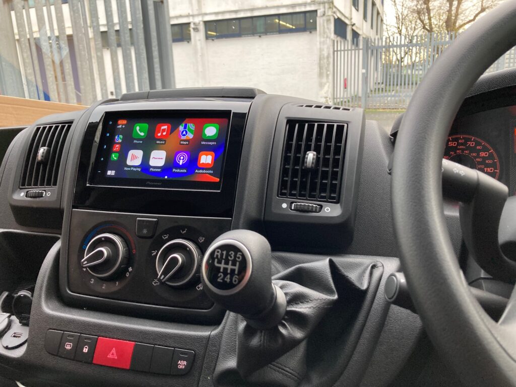 Citroen Relay 2022 model upgraded with Pioneer SPH-DA360DAB Wireless CarPlay stereo. We used the InCar Tec FK-938 fitting kit to install the stereo and retain the volume controls on the steering wheel.