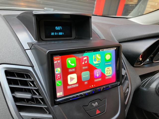 Ford Fiesta 2013 model here for a CarPlay upgrade. Fitting kit from Connects2 was used to complete the install and retain the volume controls on the steering wheel.