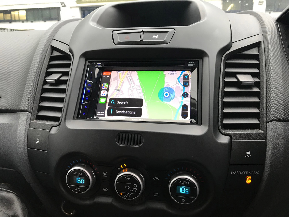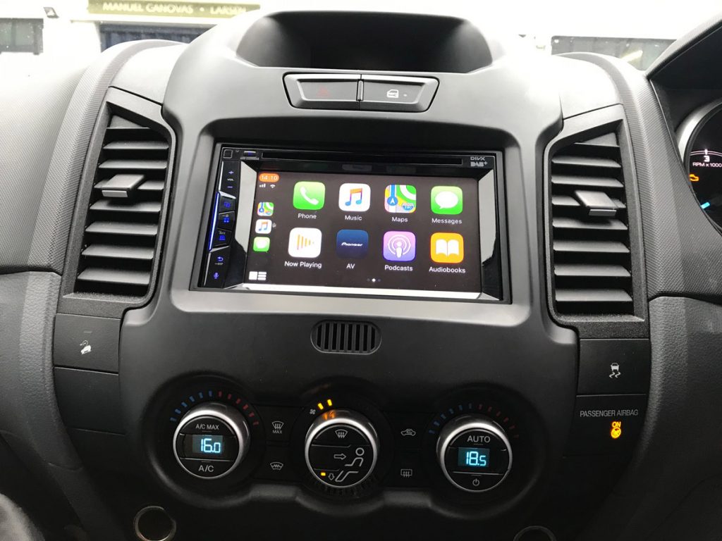 Here we have a Ford Ranger in for a CarPlay unit. Pioneer was the cusrtomer’s choice and we used a Connects2 fitting kit to install the double din unit and retain the volume controls on the steering wheel.