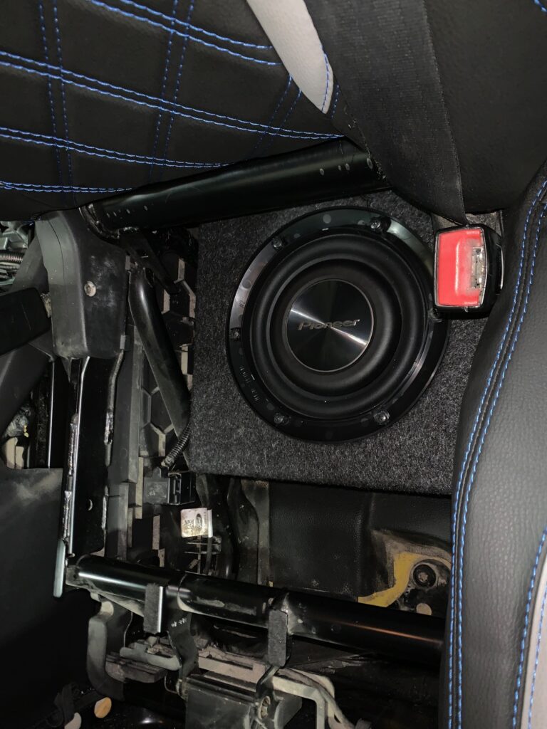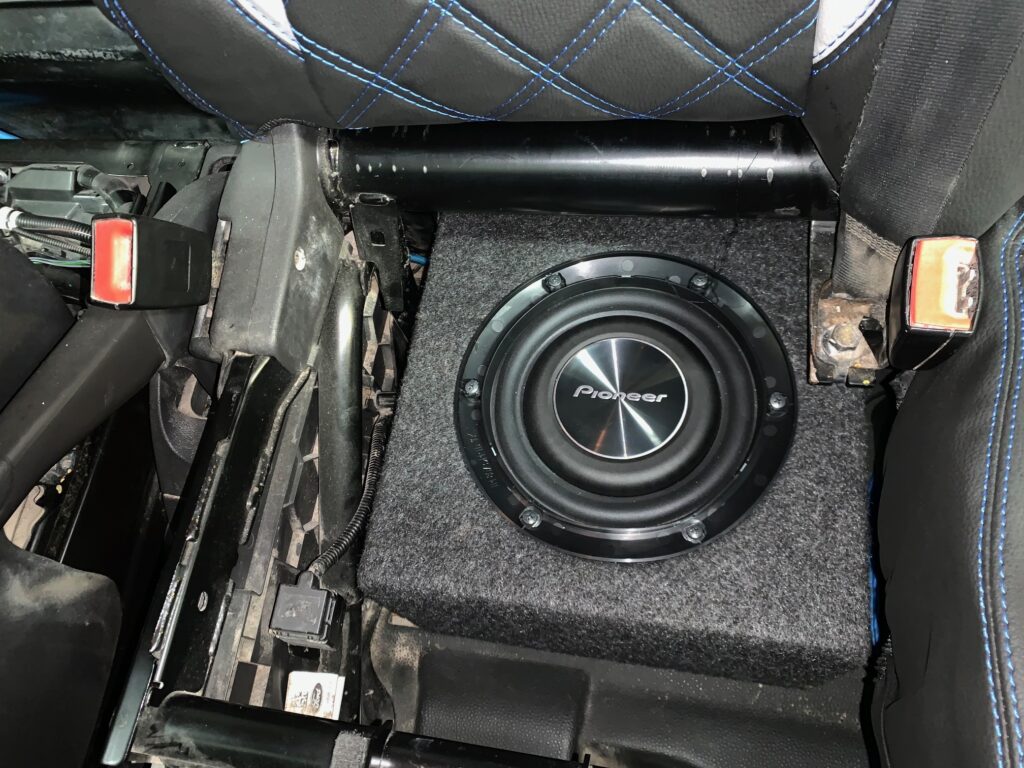 Ford Transit Custom 2013 model upgraded with Pioneer GM-D8701 amplifier, Pioneer TS-A2000LD2 Subwoofer installed in one of our custom subwoofer boxes.
