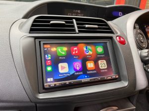 Honda Civic 2009 model here for an audio upgrade. We installed the Sony XAV-AX3005DB, a Pioneer reversing camera and we used the Connects2 fitting kit to complete the installation. The fitting kit provides the fascia and a steering wheel interface which retains the volume controls on the steering wheel. Customer now has Apple CarPlay, Spotify, DAB, Bluetooth all at a touch of a button.