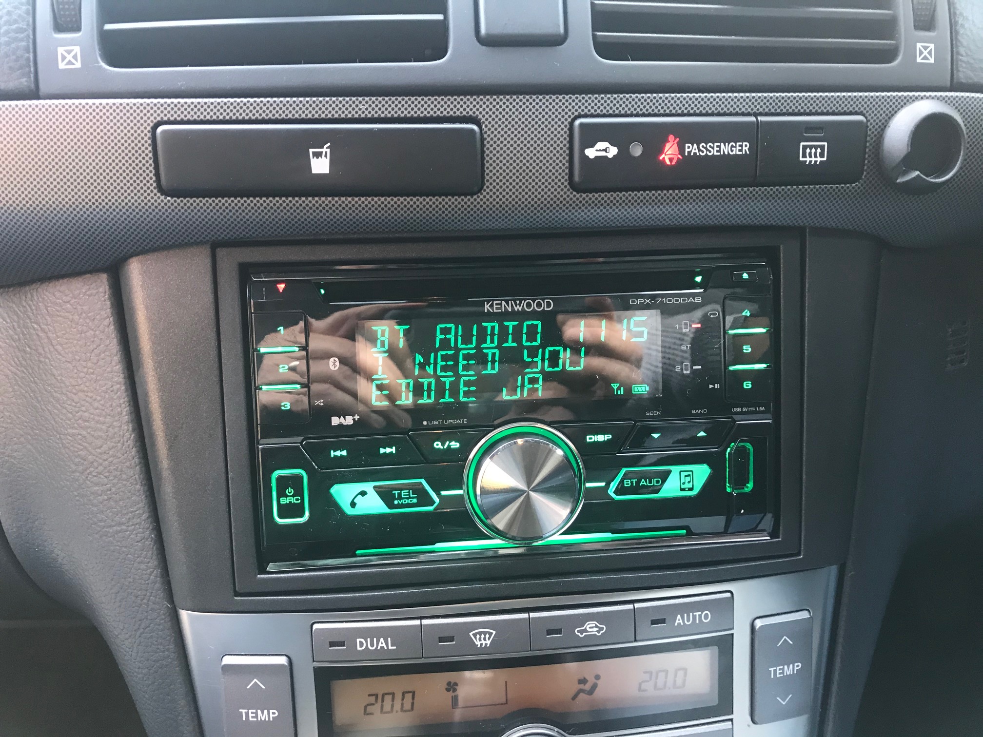Here we have a customer with a 2004 Toyota Avensis. He wanted a double din DAB unit with bluetooth and the Kenwood DPX-7100DAB fitted his requirements.