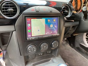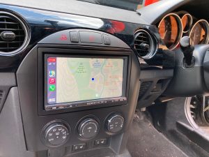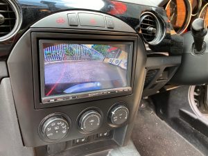 Mazda MX5 2007 model fitted with Sony XAV-3005DB and Pioneer reversing camera.