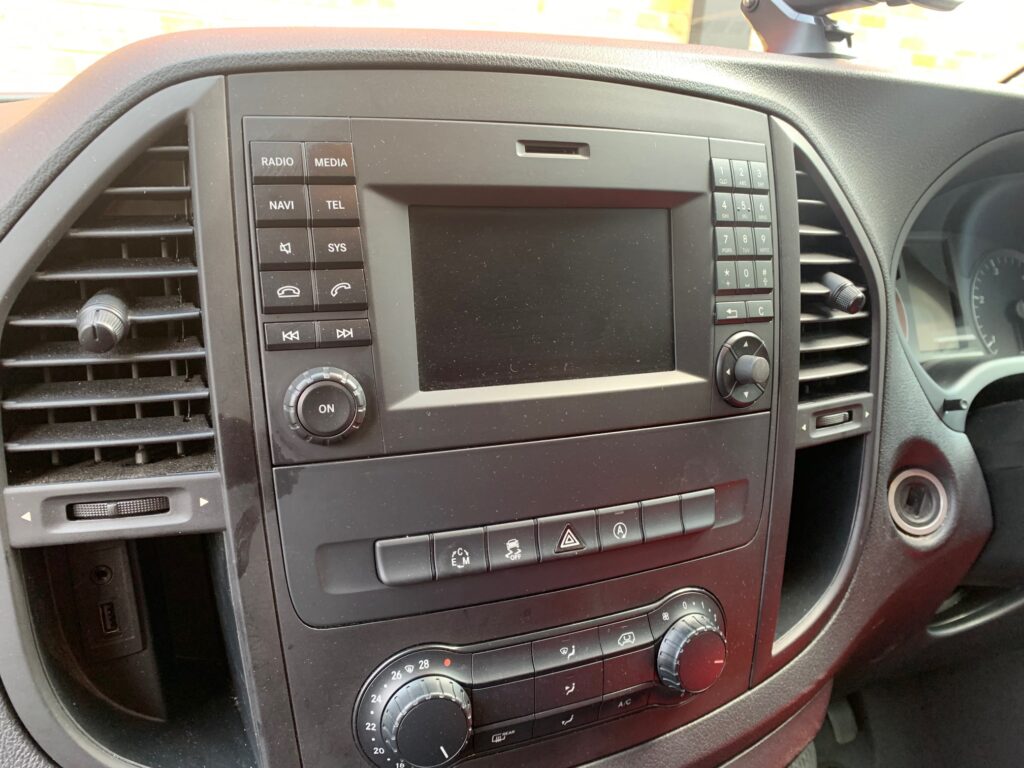 Mercedes Vito 2018 model upgraded with Kenwood DMX7722DABS wireless CarPlay stereo using the Connects2 installation kit and the CAM-MB1-RT to retain the original camera on the vehicle.