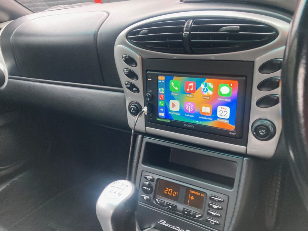 Porsche Boxster 2004 model upgraded with a Sony XAV-AX1005DB-DAB CarPlay stereo