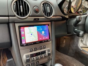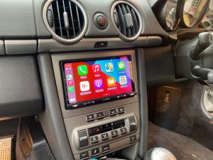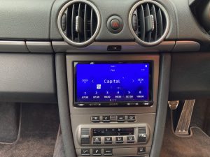 Porsche Cayman 2006 model fitted with a Sony XAV-AX5550D / Connects2 fitting kit / DAB Aerial