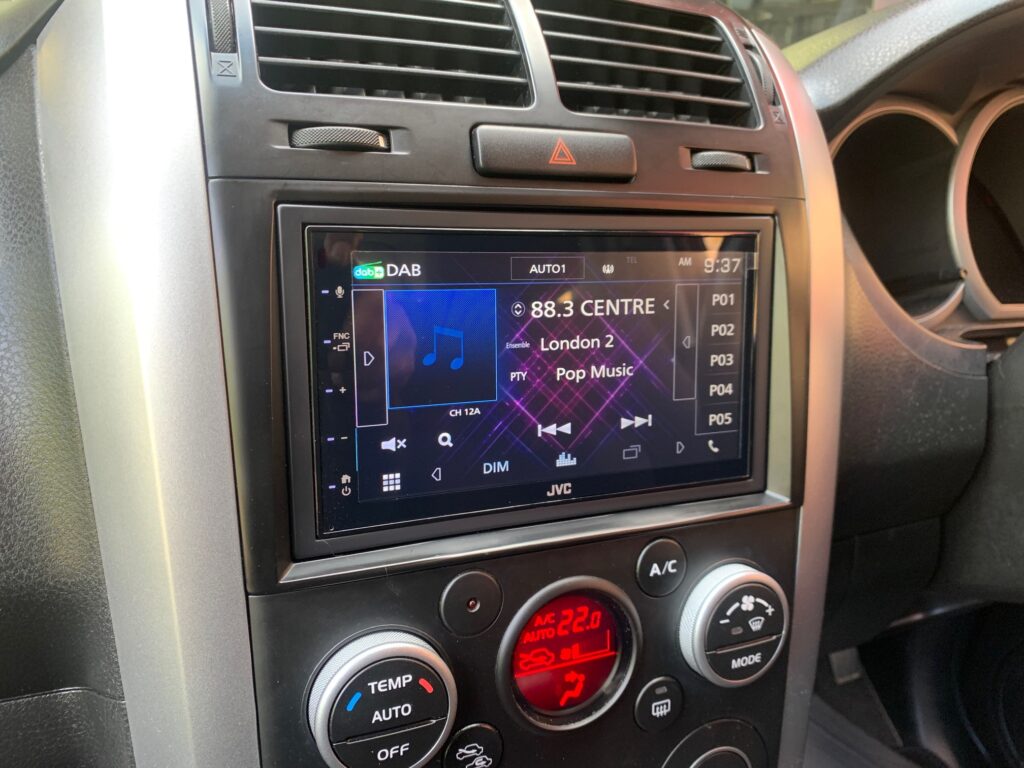 Suzuki Grand Vitara 2009 model upgraded with JVC KW-M565DBT CarPlay stereo using the Connects2 CTKSZ01 fitting kit.