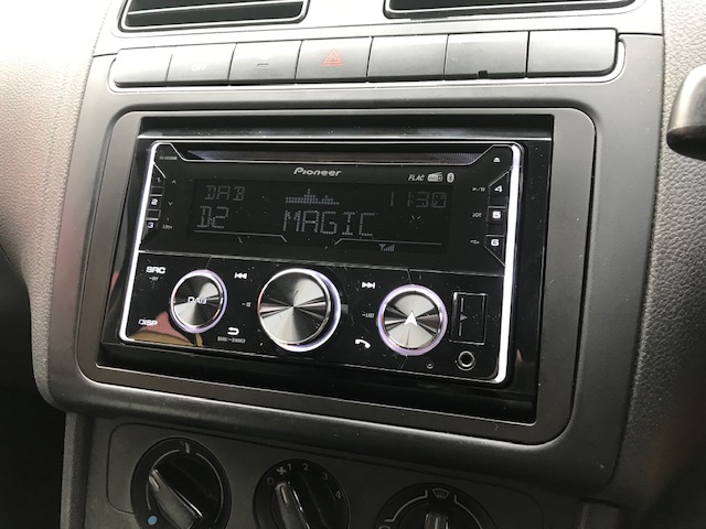 Another Polo but this time a 2011 model, the customer wanted a double din unit upgrade so we used the Pioneer FH-S820DAB Bluetooth and DAB radio.