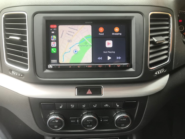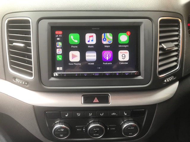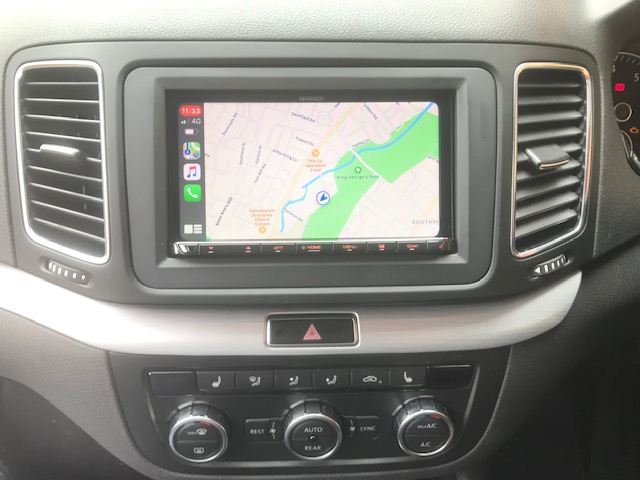 Here we have a VW Sharon 2013 model with a Kenwood CarPlay and reverse camera fitted to it. To complete the installation we used a Connects2 fitting kit which allow us to install the unit and retain the controls on the steering wheel. We have these kits for most models of cars and hence we can install stereos into most vehicles.